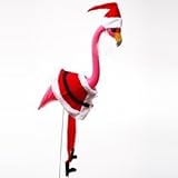Welcome Your Guests with a Christmas Flamingo! This new twist on the classic pink flamingo yard ornament is perfect for your yard! The Santa flamingo is a great Christmas decoration and a perfect addition to your next holiday party. One Santa flamingo per package. Each set comes with two metal stakes, each 24" tall. Flamingo with legs is 36" tall and 13" wide. Pink flamingo with red Santa hat and beard and coat with legs. Made of plastic. The Santa yard flamingo is a great party decoration for any Christmas party. These Santa flamingo yard ornaments are a jolly new twist on the classic pink flamingo!. Part of Decorations > Outdoor Decorations