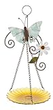 When hanging, this yellow glass flower plate creates an easy-to-use birdfeeder. Chains are decorated with metal accents like a butterfly featuring paisley wings and a flower with a leaf. Birdfeeder plate is 9-Inch diameter; hangs approximately 19-Inch long. Add to your own garden to welcome birds, or give as a gift that will be appreciated and used. Sunset Vista Designs has everything under the sunset to decorate your home and garden.