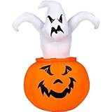 Bring the spirit of Halloween to your favorite "haunted" house with this fun and scary decoration. Measuring 4 feet tall, it makes a statement wherever it's put, indoors or out: "boooooooooo!" Included is everything necessary to get it going in a matter of minutes: stakes, tether, light and pump. Just secure it to the ground, plug in the pump, and enjoy. Will provide hours and hours of fun. Place it outside to frighten the little Trick or Treaters or bring it inside and make it the centerpiece of your big Halloween bash.