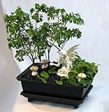 The garden is accented with live Creeping Fig Plant, decorative pebbles, and 3 magic mushrooms. This Fairy Garden Bonsai makes a perfect gift for the home, apartment, dorm, office or den.