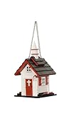 Bird Feeder is fashioned after a country church with a red door decorated with a white cross. Ledge for birds to perch also helps to prevent food spillage. The architectural detail of Le Petit Chalet’s birdhouses and feeders add unique beauty to any home. Reminiscent of quaint country cottages, Victorian houses, chapels and other charming buildings, Le Petit Chalet uses real wood, exterior water-based paint, with UV protection, and galvanized screws and nails for top-quality construction and long-lasting beauty. Le Petit Chalet birdhouses and feeders are also built with attention to the needs of birds with details like breathing and drainage holes, bird hole openings, space inside and distance from hole to floor researched and incorporated on every model. Climate and the elements will weather the house and change its appearance over time; however, weathering will add to the item's natural charm without compromising its function. Should you want to preserve the finish (paint), it is recommended to cover it with two to three coats of a water-based semi-gloss outdoor wood finish. You should expect that once left outside, the product will weather and require refinishing.