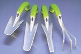 Advanced ergonomic design maximizes power while it minimizes hand and wrist stress. Natural radius grip. Ultra-light, super strong, rust proof aluminum-magnesium blade. Size: 3.5"D x 3.25"W x 11.75"L.