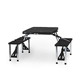 This Picnic Time portable folding table features a compact fold-out table with bench seats for four that you can take anywhere; when not in use, it collapses into an easy-to-transport suitcase-size. This table and chairs unit has a maximum weight capacity of 250 pounds per seat and 20 pounds for the table, and is constructed of ABS plastic, making it is easy to clean, while the frame has an aluminum alloy construction for durability.