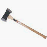 High-carbon steel forged head. Heat-treated with full ground edges. Fitted, wedged hickory handle. 34 IN handle, 3-1/2 lb. head.