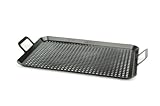 Durably built, this innovative cooking grid allows for easy transport of steaming meat and vegetables directly from the grill to the table. The perforated steel grid bears a resilient black porcelain coating, making it extraordinarily strong even when exposed to high heat. The unique surface also prevents food from sticking, leaving steaks, burgers, chicken, and vegetables unmarred when transferred to serving dishes. Two large, sturdy handles provide a secure grip, even when grasped with cumbersome oven mitts or potholders. Best of all, the unit cleans up quickly by hand or in the dishwasher. The porcelain grid measures 12 by 20 by 2 inches.
