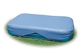 This is a medium blue plastic cover for inflatable pools that's approximately 6 feet long by 44 inches wide. There's a 20-inch overhang, and the cover is secured with rope ties that slip under the pool's corners. --Richard Farr