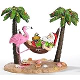 You'll be dreaming of a tropical Christmas with this humorous glass figure featuring Santa in a hammock, relaxing with a parrot & flamingo under decorated palm trees. A wonderful and unique addition to your decor this holiday season. Table piece height: 10.5 inches.
