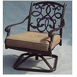 Darlee Santa Monica Cast Aluminum Outdoor Patio Swivel Rocker Chair Club Chair With Cushions - Antique Bronze. DL2056-3. Patio Dining Chairs. The Darlee cast aluminum patio swivel rocker club chair has an antique bronze finish and is constructed using innovative designs, superior aluminum metals and meticulous construction. This cast aluminum patio swivel rocker club chair will never rust and is perfect for any outdoor living area. Aluminum patio swivel rocker club chair dimensions are 31L x 28W x 36H and the seat dimensions are 24L x 24. 5W x 13H. All Darlee outdoor furniture has a limited five year warranty from the date of purchase and is made to withstand the elements. Includes seat and back cushion.