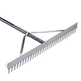 Specifications: 36 Inch high-grade aluminum head with high striking edge. Non-gouging rounded teeth, 66 inches long, 1-1/8 inch diameter blue powder-coated aluminum handle with 6 inch green non-slip vinyl grip.