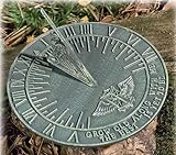 Beautiful and Functional Handcrafted from cast iron this Sundial has a weather resistant durable finish that will last a lifetime. Sundials work by measure time as it is. Noon is when the when the sun is highest in the sky (when it crosses the meridian). Sundials are a perfect accent piece to any outdoor decor and are a great topic of conversation. 10" Diameter Verdigris Finish In Stock-Ships Fast