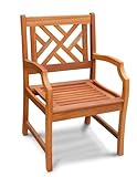 This stylish Atlantic armchair is made of FSC High Density Eucalyptus (Shorea). Sturdy furniture set is sure to enhance your patio decor. Wooden chairs are expertly kiln-dried and extremely durable for outdoor/indoor use. High Density Eucalyptus (or also known as Shorea in our line) is the premium grade of solid "Eucalyptus Gradis" hardwood, grown in 100-percent well managed forests in Brazil, certified by the FSC (Forest Stewardship Council). There is little difference between High Density Eucalyptus (Shorea) and Teak when broken down to their core essence. The biggest attribute of High Density Eucalyptus (Shorea) is undoubtedly the strength of the timber. It's renowned for its excellent resistance to every day wear and tear. It is extremely durable and tightly grained to produce a desirable density. It remains unaffected by all variations in weather, especially its resistance to damp conditions makes itself extremely competent at combating insect attacks and decay. Comes in a Natural Wood Finish. 23 by 23 by 37-Inch